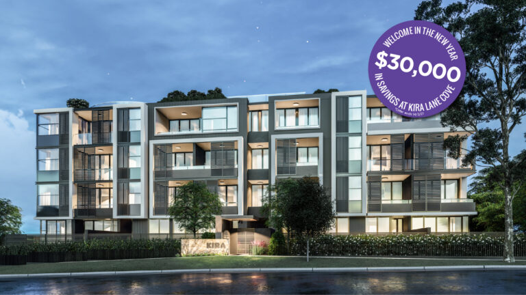 $30k of Savings on all 2 Bed Apartments Say hello to 2021 with $30,000 of savings at Kira Lane Cove with Hyecorp’s “New Year – New Home” offer Hyecorp will match the $15K HomeBuilder Grant so you can celebrate the